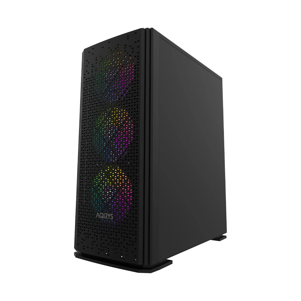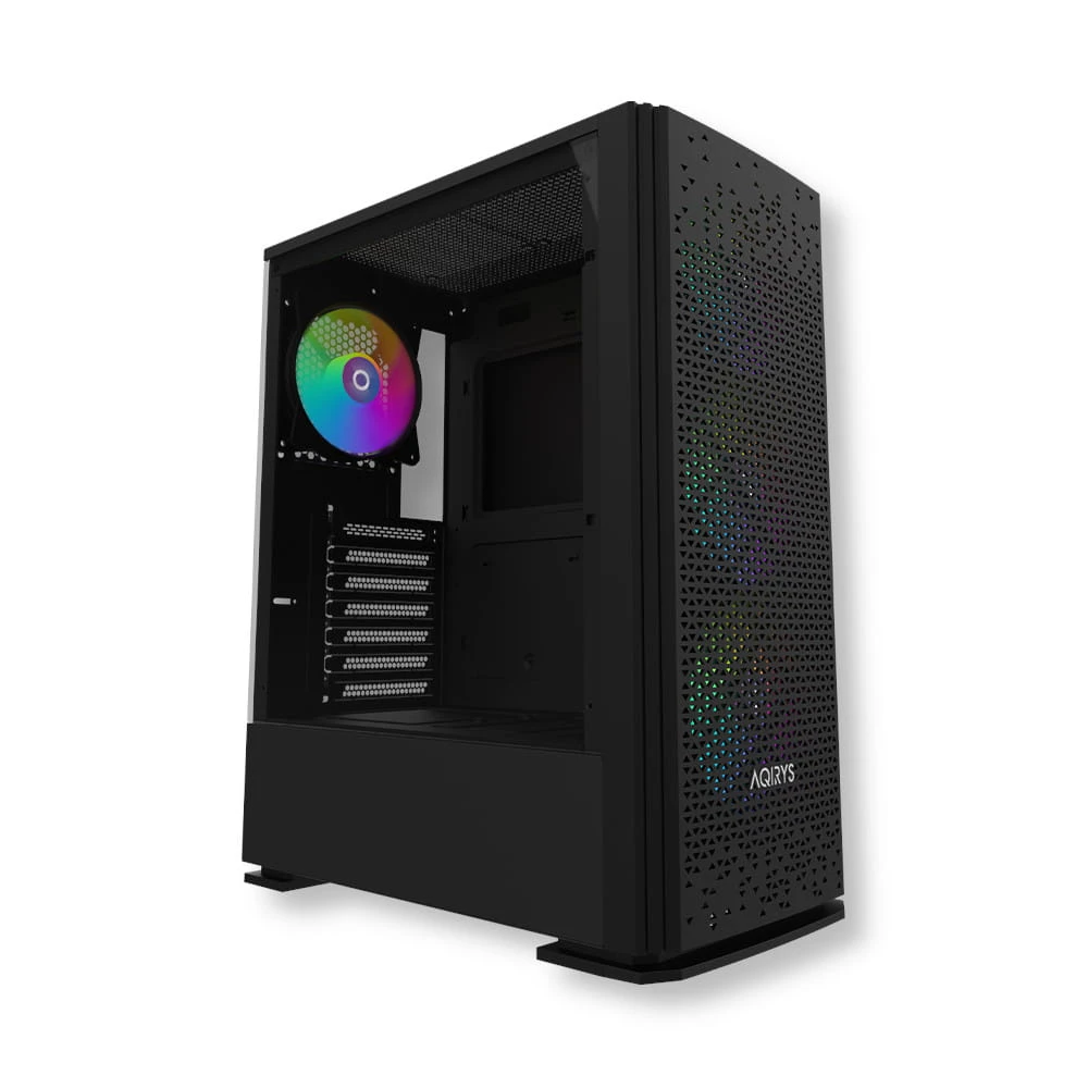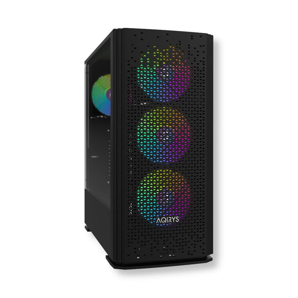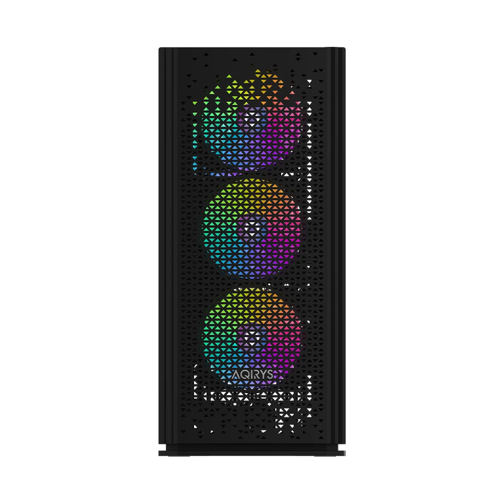 AQIRYS Gacrux zapewnia doskonałe warunki chłodzenia dzięki czterem fabrycznie zainstalowanym wentylatorom RGB. Trzy wentylatory z przodu i jeden z tyłu gwarantują odpowiednią cyrkulację powietrza, a możliwość zainstalowania dodatkowych dwóch wentylatorów na górze pozwala na dostosowanie chłodzenia do indywidualnych potrzeb. Podświetlenie RGB można kontrolować za pomocą przycisku LED na panelu przednim lub zsynchronizować z kompatybilną płytą główną.