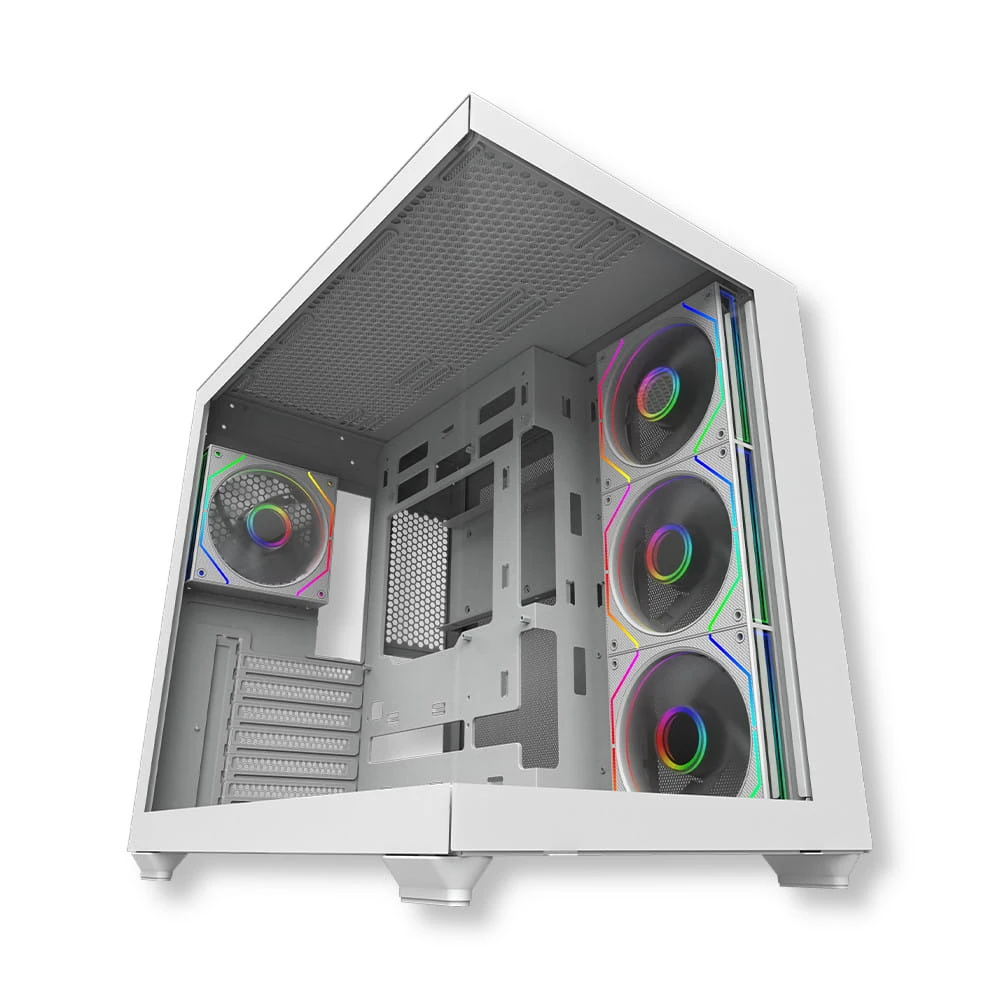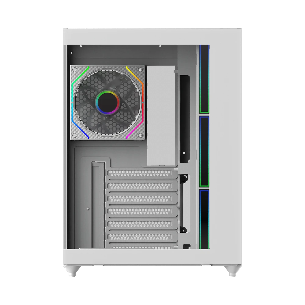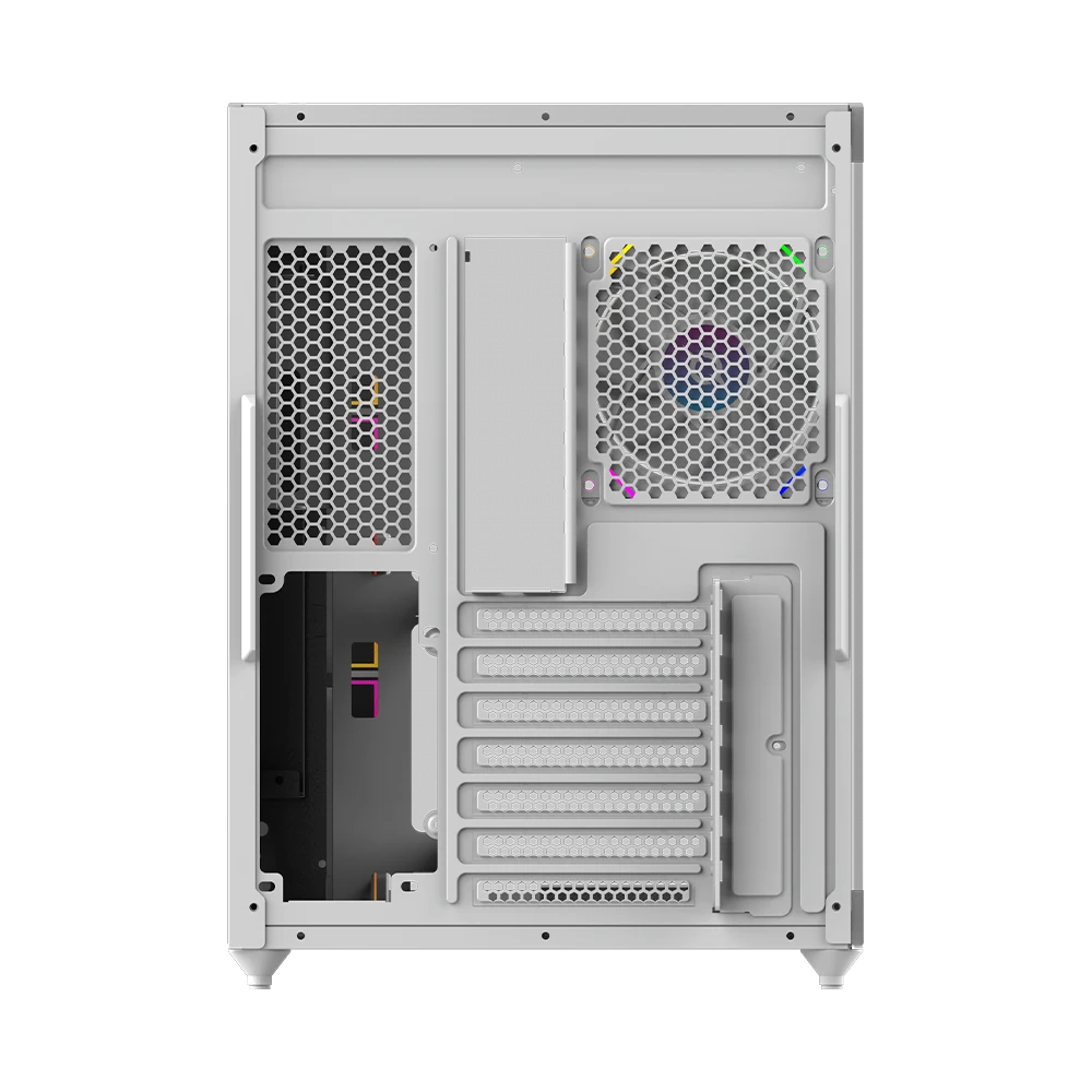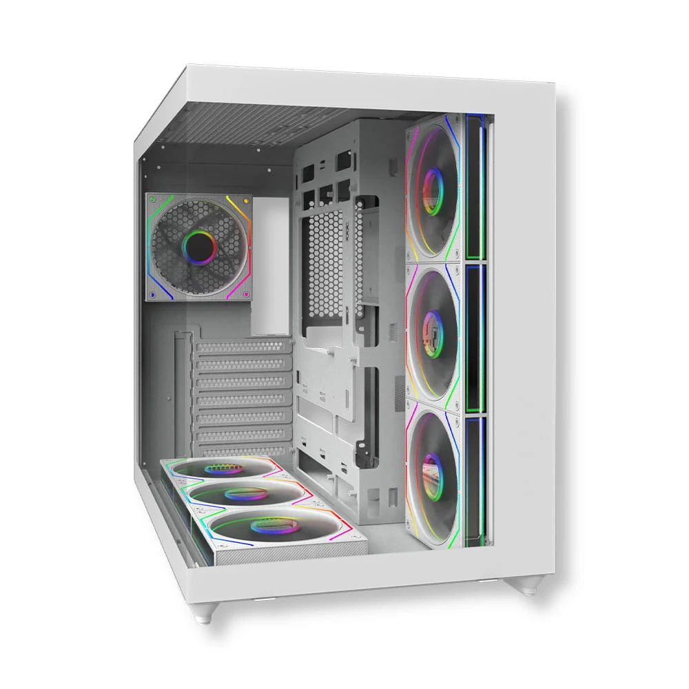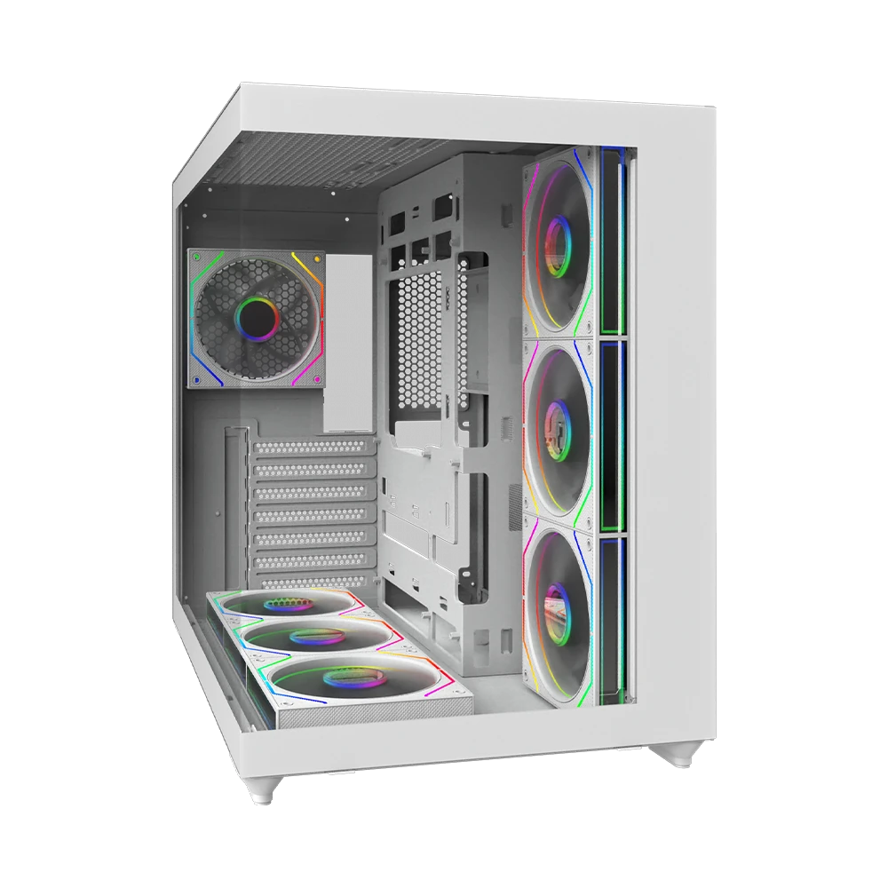 - Zainstalowane wentylatory 7 sztuk (tył: 1 × 120 mm ARGB, bok: 3 × 120 mm ARGB Reverse Blade, dół: 3 × 120 mm ARGB Reverse Blade)