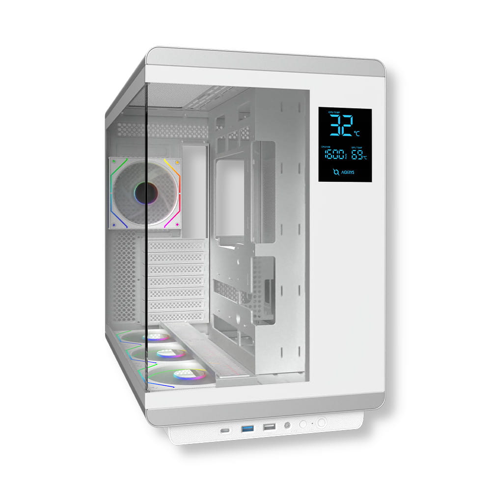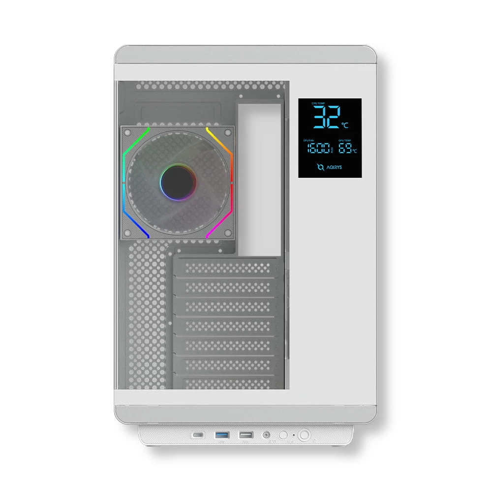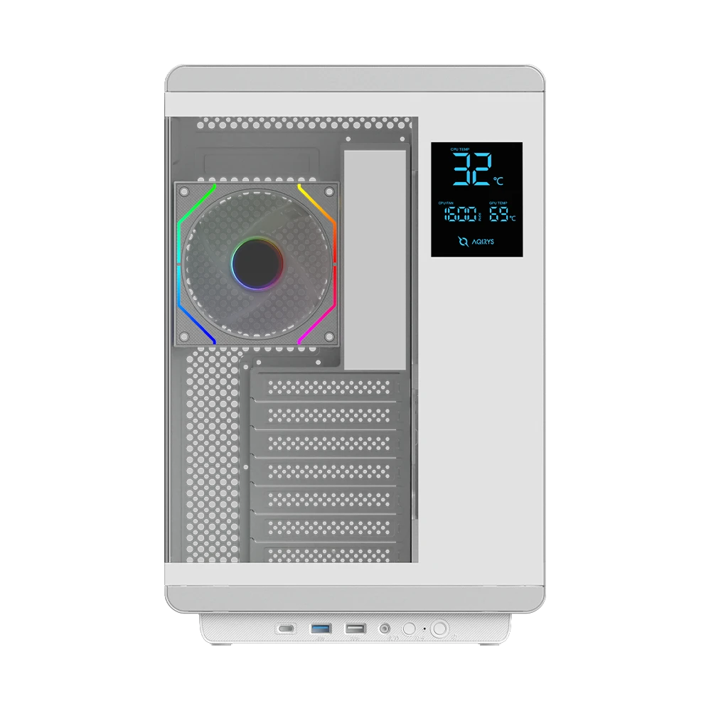 - Zintegrowany ekran LCD – wyświetla temperatury CPU i GPU oraz prędkości wentylatorów, dając Ci pełną kontrolę nad systemem.
