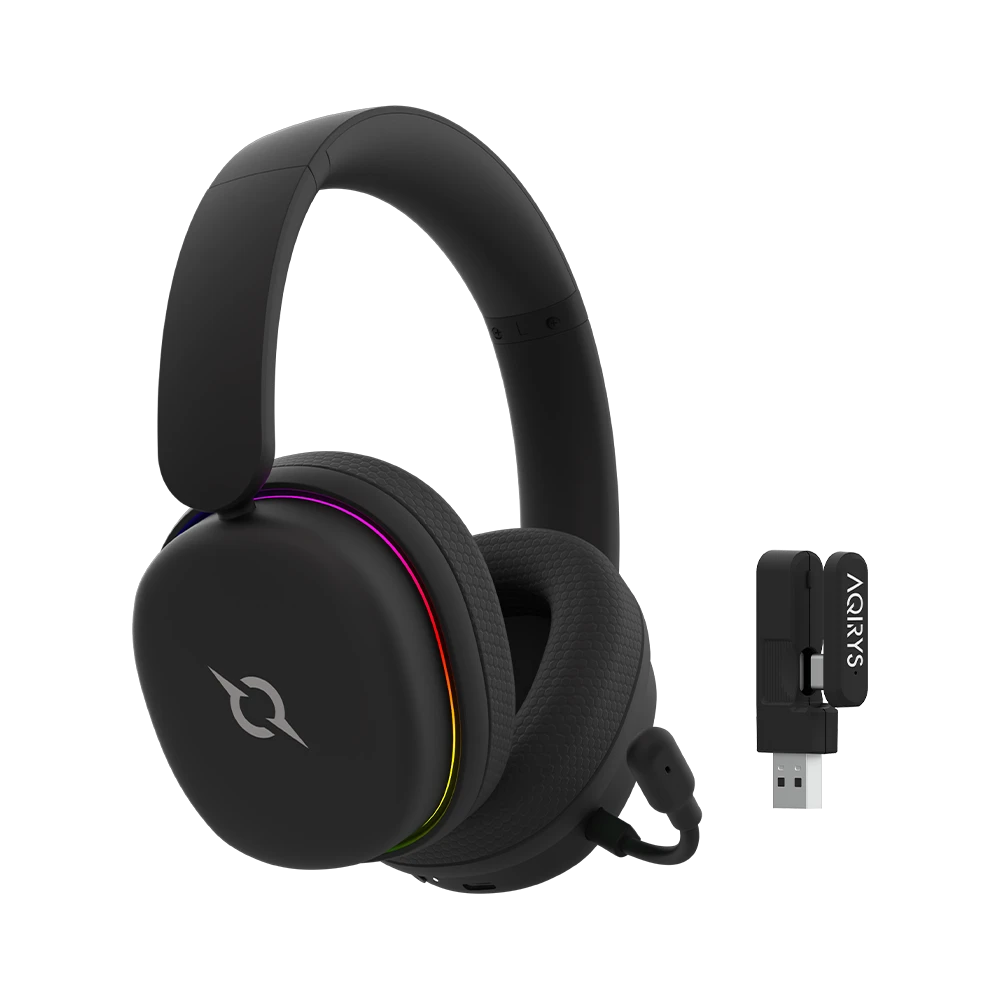 Słuchawki AQIRYS Luna oferują kilka opcji połączenia – możesz korzystać z Bluetooth 5.0, ultraszybkiego połączenia 2.4 GHz (USB-C), a także z klasycznego kabla audio. Dzięki temu są kompatybilne z niemal każdą platformą: od PC i konsol (PS4, PS5, Xbox, Switch), przez smartfony, aż po laptopy i telewizory. Niezależnie od tego, gdzie i jak grasz lub słuchasz – Luna jest gotowa.